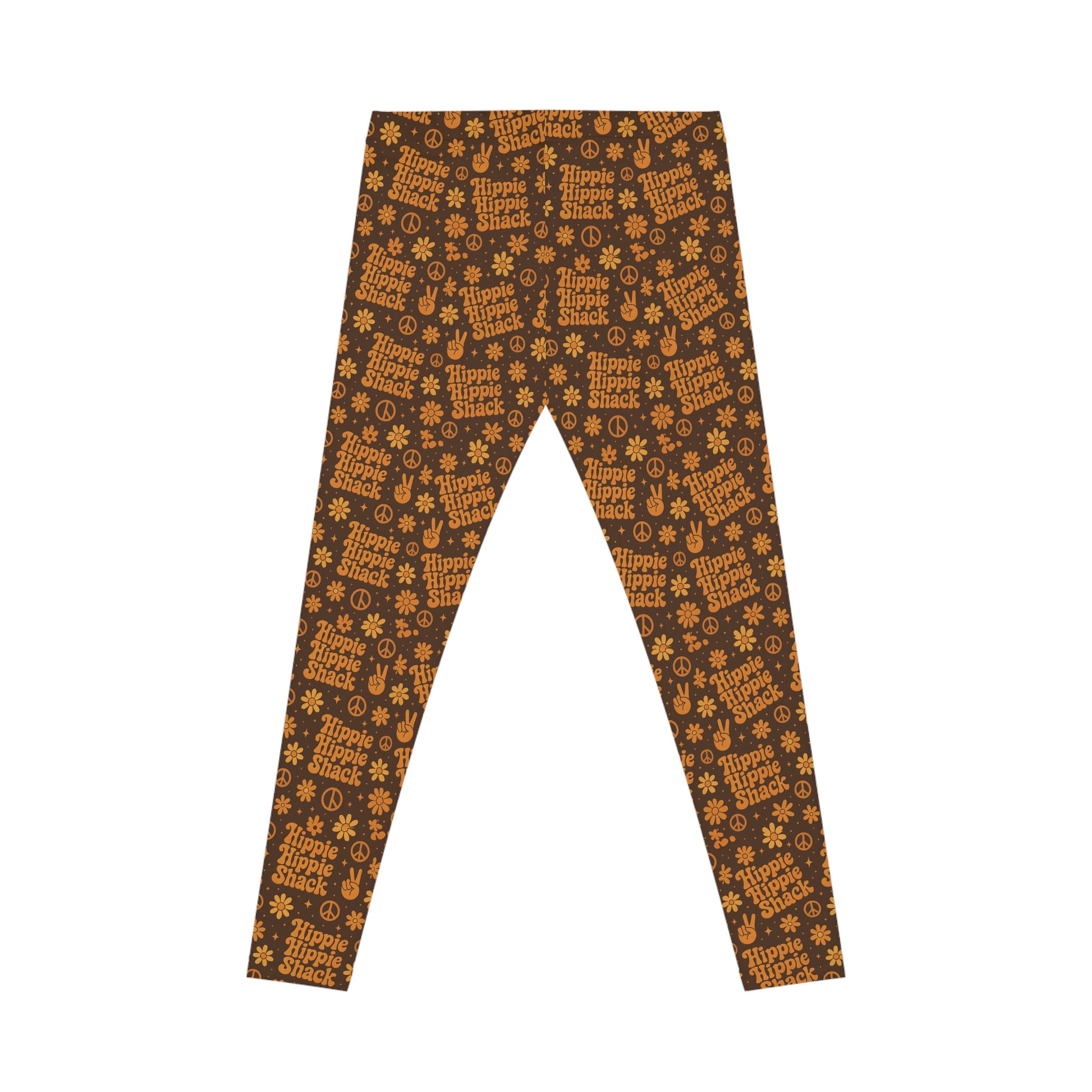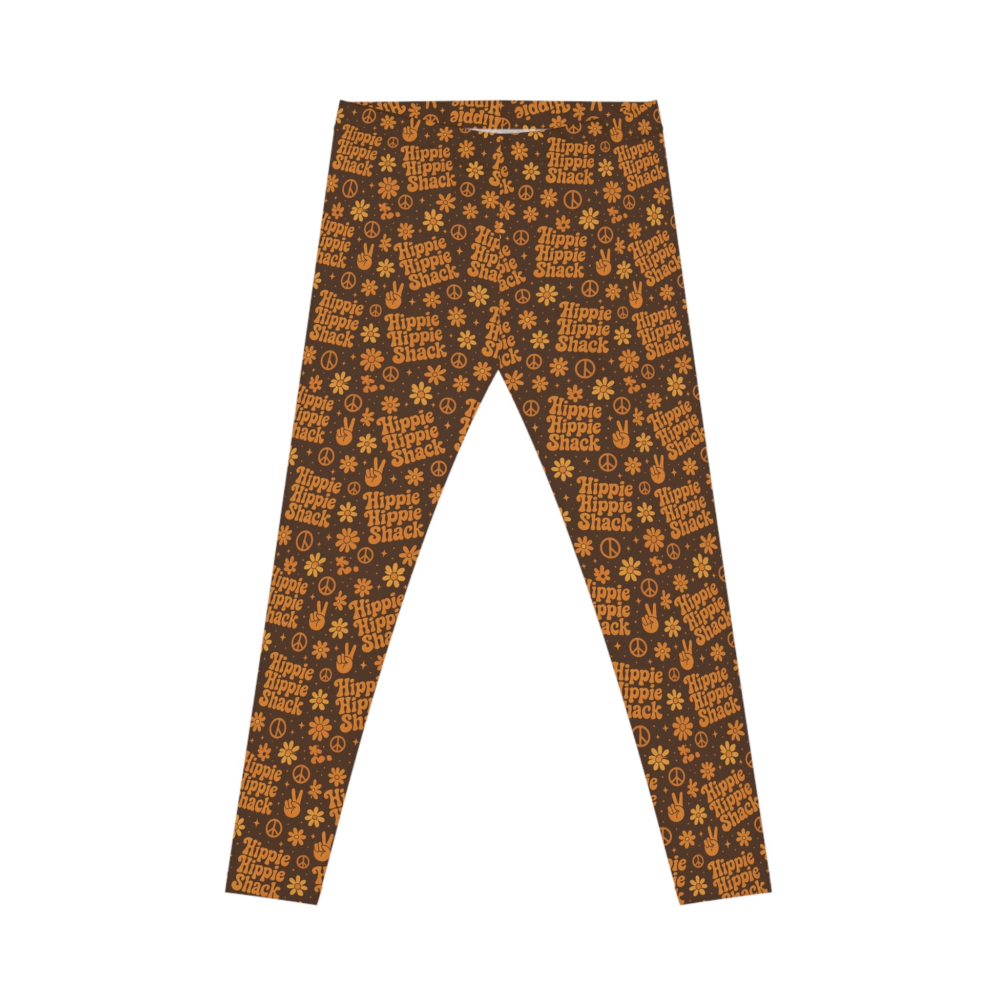 These leggings bring retro warmth to everyday wear. The all-over print pairs deep brown with sunlit orange icons and hand-lettered phrases, giving a cozy, vintage-vibe that feels both playful and grounded. Lightweight and silky to the touch, they move with you thanks to the polyester-spandex blend, sitting at a comfortable mid-rise with a thin elastic waistband. Wear them on slow mornings with an oversized knit, to weekend markets, or layered under a denim dress when the day cools — they add a nostalgic, handmade-note to simple outfits and small rituals.