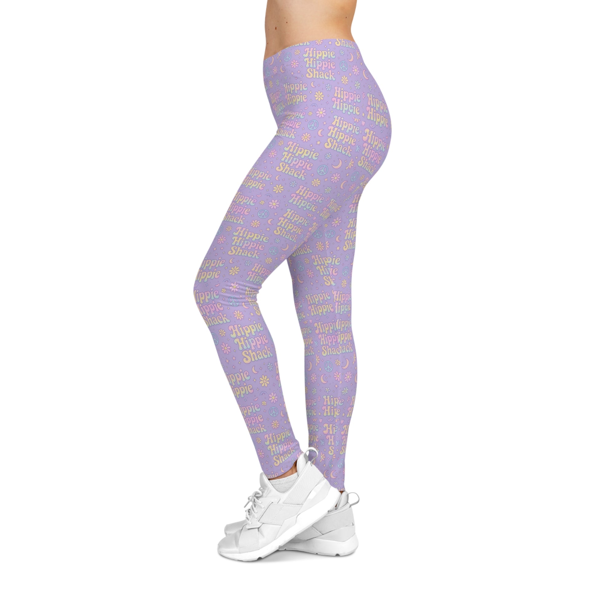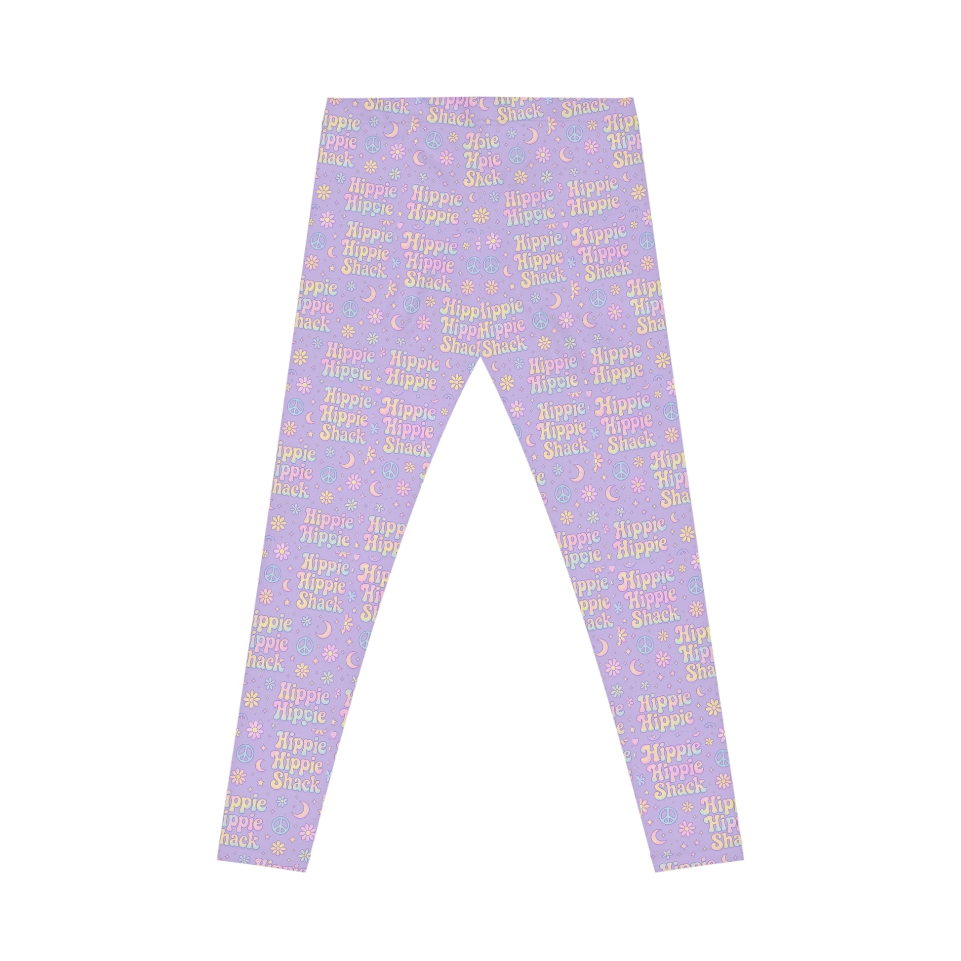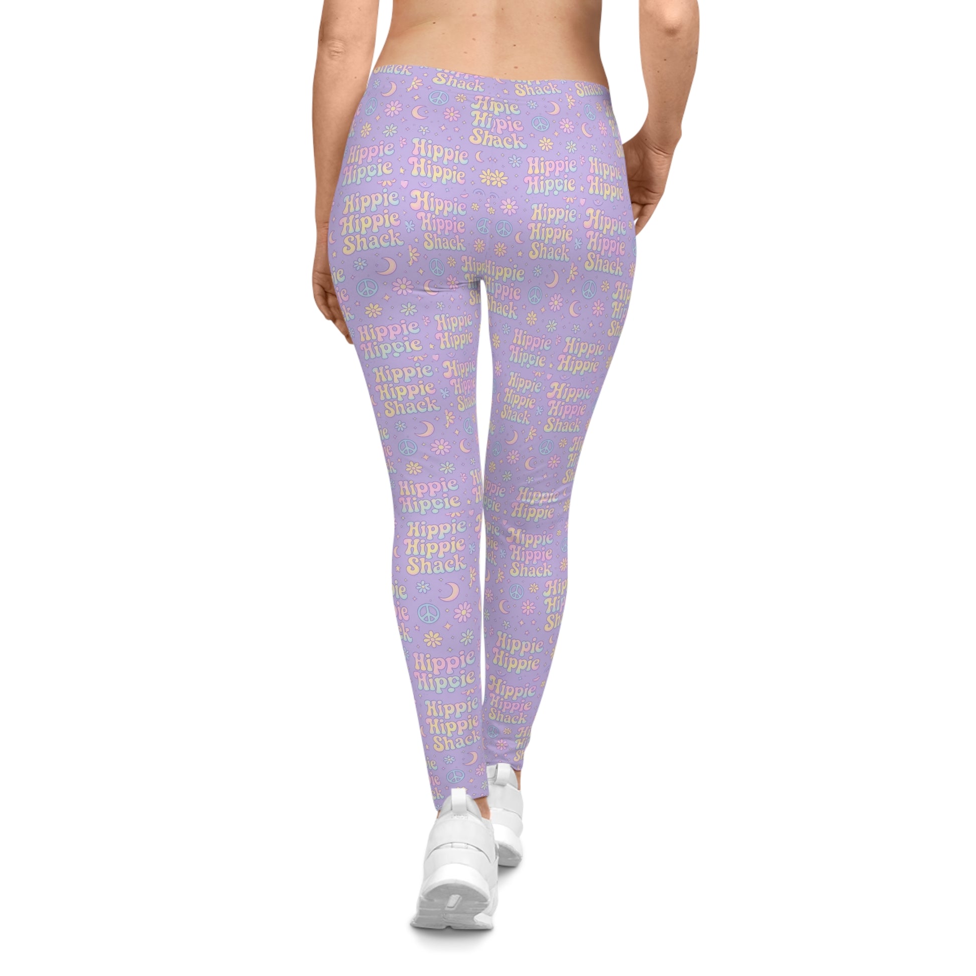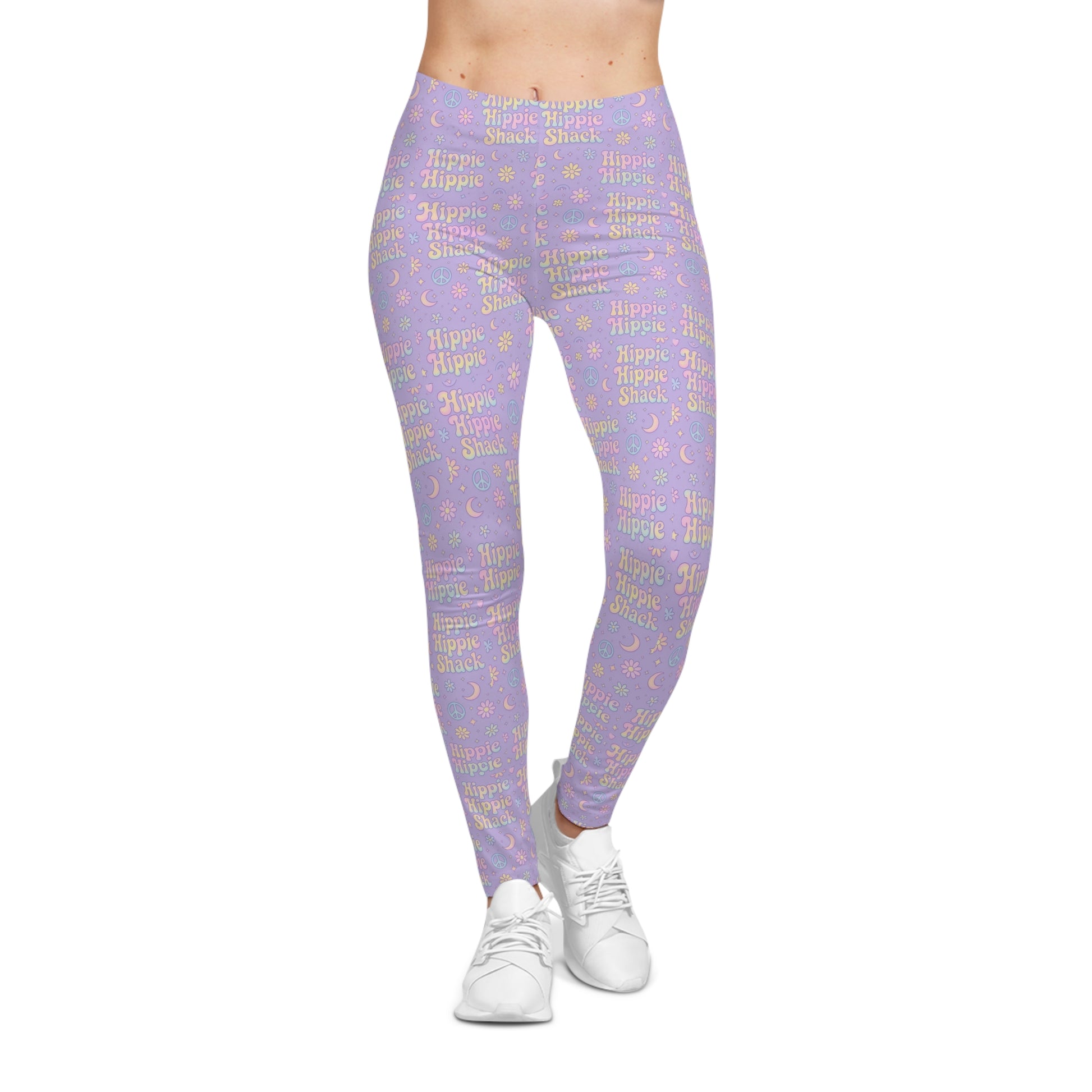 These leggings bring a soft, whimsical vibe to everyday wear. The all-over print pairs pastel lavender with cheerful peach moons and hand-lettered words for a playful, cottagecore-meets-retro look. Lightweight and silky to the touch, they stretch with you and hold bright, crisp color wash after wash. Wear them for slow weekends, creative studio days, or cozy gatherings — they move with your body and your mood, adding a subtle, nostalgic accent to simple outfits.